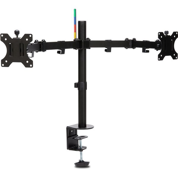 - Quick-release VESA 75/100 mounting plate accommodates monitors up to 34\" and 8kg per arm.