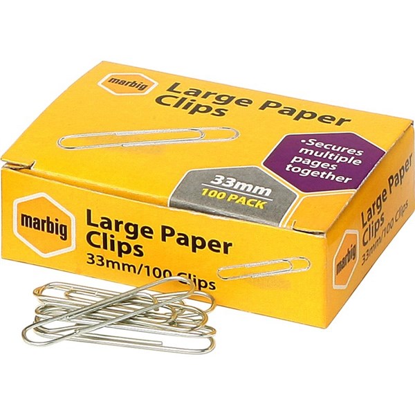 PAPER CLIPS LARGE 33MM BOX OF 100 141755
