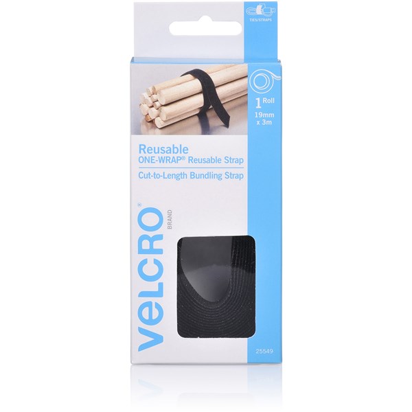 VELCRO ADJUSTABLE WRAP REUSABLE 19MMx3M BLACK
