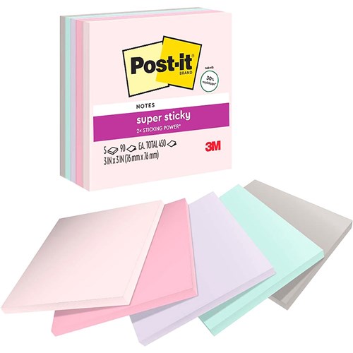 POST-IT SUPER STICKY RECYCLED NOTES 654-5SSNRP 76X76MM PK5