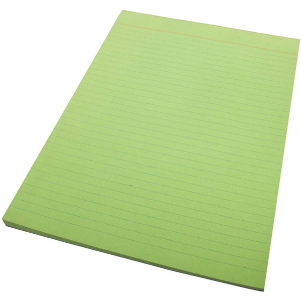 QUILL A4 70LF COLOUR BOND PADS GREEN RULED