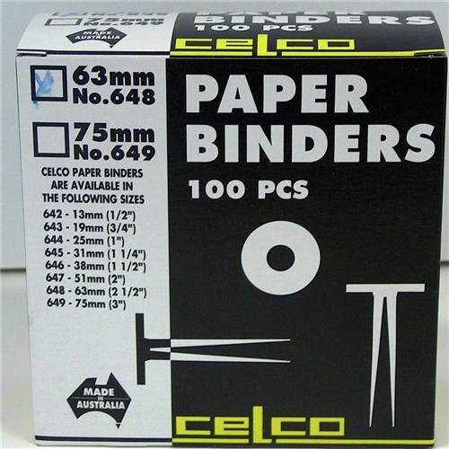 ESSELTE PAPER BINDERS No 648 - 63MM BOX OF 100