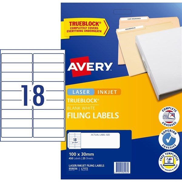 AVERY MEDIA LASER LABELS L7172 RING BINDER UNI