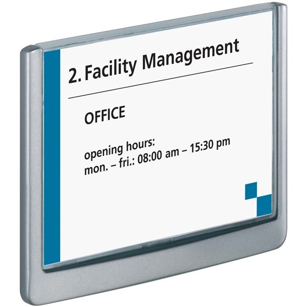 Plastic door sign with easy exchange of inserts through complete extraction of the viewing window.