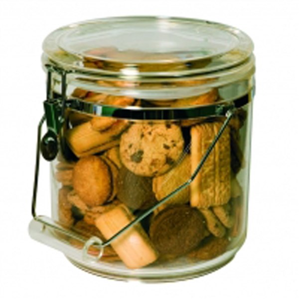 Air-tight lid with chrome clip.