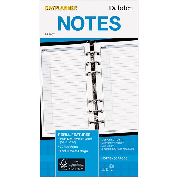 Suits most 3, 6 & 7 Ring Organisers on the market. (172x96mm).