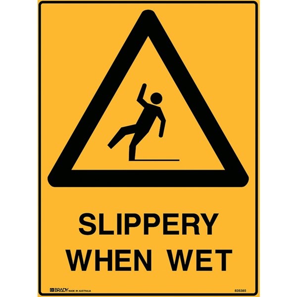 BRADY WARNING SIGN Slippery When Wet 600x450mm Polypropylene