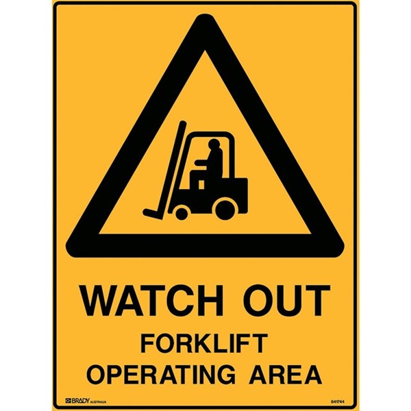 BRADY WARNING SIGN Watchout Forklift 600x450mm Polypropylene
