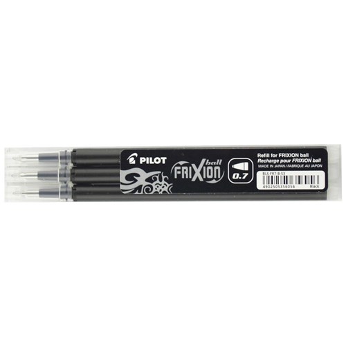 PILOT FRIXION 0.7MM BLACK REFILL PACK 3
