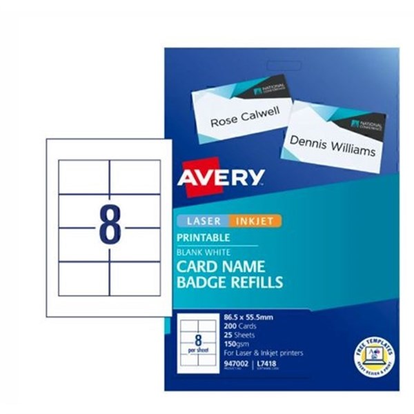 AVERY L7418 NAME BADGE REFILL 947002 PK200