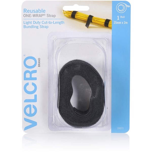 VELCRO REUSABLE LIGHT DUTY BUNDLING STRAP 25MMX2M BLACK