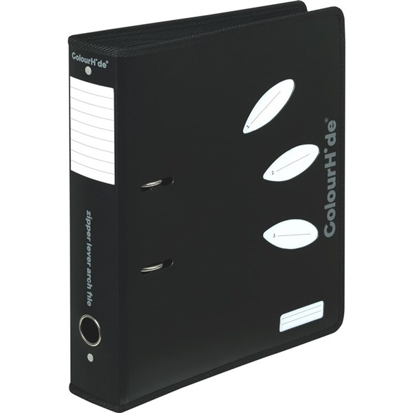 COLOURHIDE LEVER ARCH FILE A4 ZIPPER BLACK 70MM