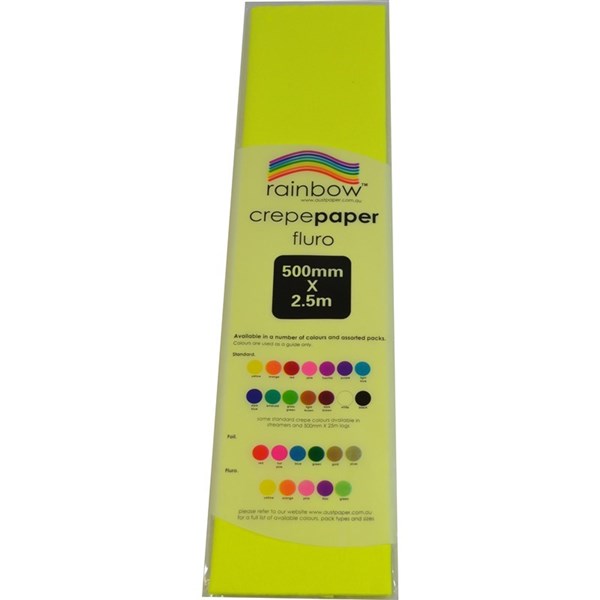 RAINBOW FLURO CREPE PAPER 500mmx2.5m Yellow