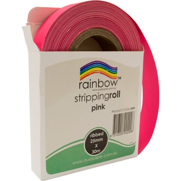 RAINBOW STRIPPING ROLL RIBBED 25mmx30m Pink