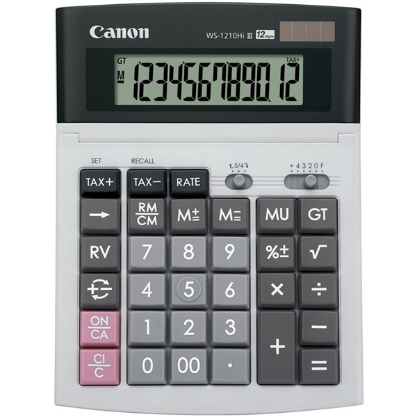 - Basic Functions: Sign change, Constant calculation, Backspace, Grand Total, Addition, Subtraction, Multiplication, Division, Shift, Decimal switch, Rounding switch, Square root, Tax calculation.
