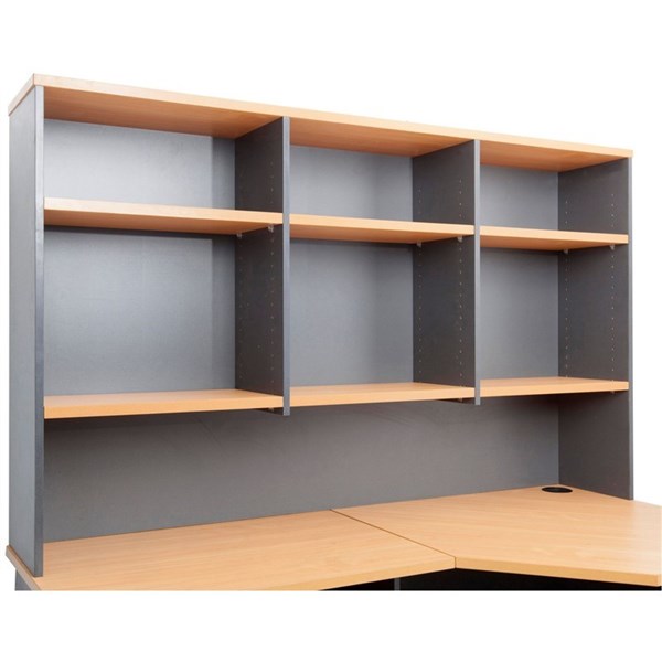 - The hutch comes with adjustable shelves and a space for a monitor under the shelves to maximise desk space, and clear clutter from the desk top.
