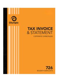 OLYMPIC CARBONLESS INVOICE & STATEMENT BOOK 726 DUPLICATE 250X200MM