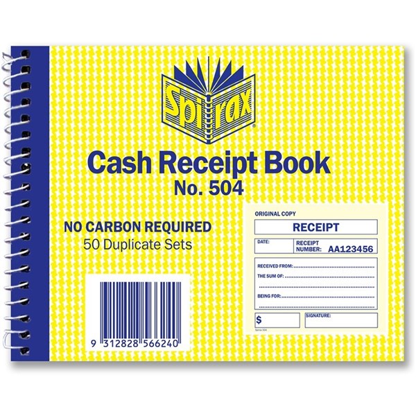 SPIRAX 504 CASH RECEIPT BOOK 127x100mm Side Bound