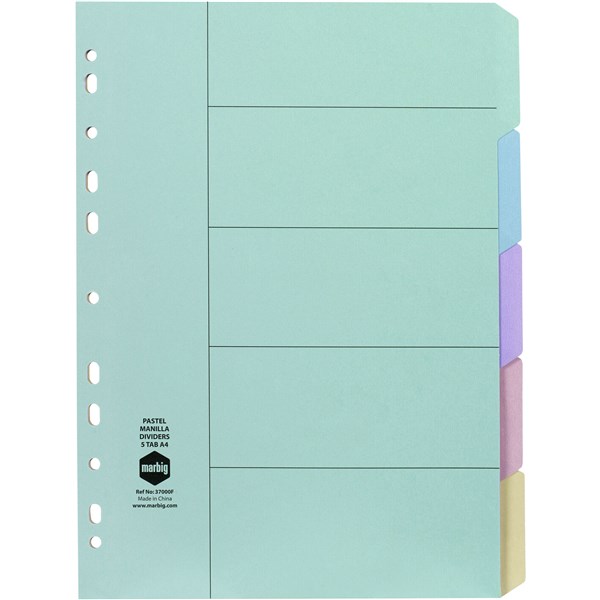 A4 COLOUR DIVIDER 5 TAB ACO 37000 SET PASTEL