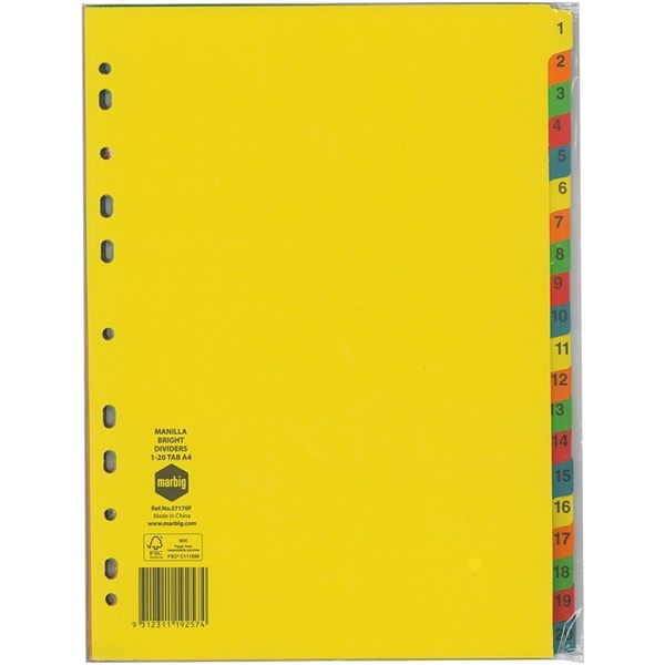 A4 DIVIDERS 1-20 TAB MANILLA BRIGHT SET