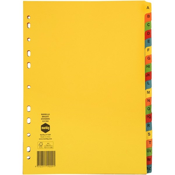A4 DIVIDERS A-Z TAB MANILLA BRIGHT SET