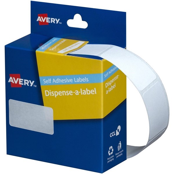 AVERY DISPENSER LABELS Rectangles DMR2438W 24x38mm White PK380