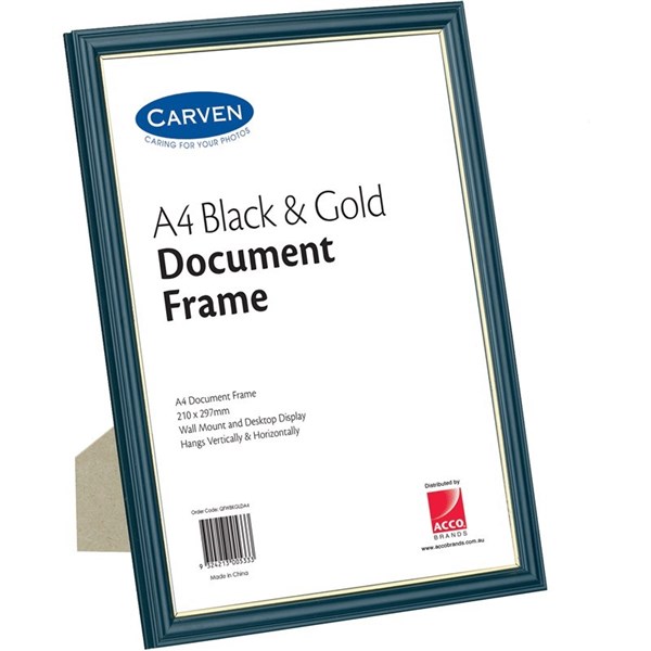 A4 Q-FRAME CERTIFICATE FRAME BLACK WITH GOLD TRIM