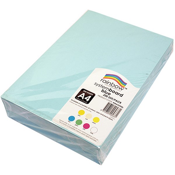 RAINBOW SYSTEM BOARD 200GSM A4 BLUE PACK 200