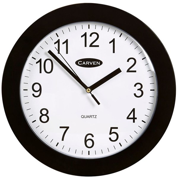CARVEN WALL CLOCK 250mm Plastic Frame Black