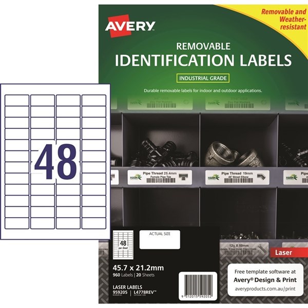 - Size: 45.7x21.2mm 960 labels, 20 sheets. 48 labels per sheet (48UP).