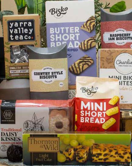 This Hamper Contains: Yarra Valley Tea Co Organic English Breakfast 30g, Bisko Butter Shortbread